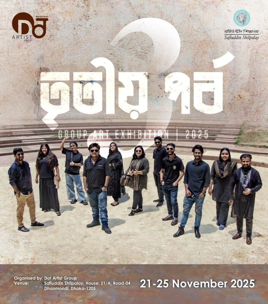 তৃতীয় পর্ব Event: Art Exhibition Artist: Group Date: 21/11/2025 - 25/11/2025 Opening Ceremony Tribute to Hamiduzzaman Khan by Dot Artists Group Spread the love